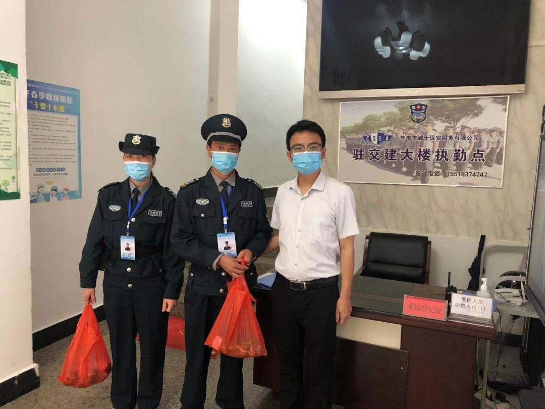 6月10日,公司管理人員分成小組,分別去到畢節(jié)婦幼保健院、匯金中心、交建大樓等各駐勤點(diǎn),向隊(duì)員們逐一送上親手包的粽子,借此表達(dá)對(duì)他們辛勤付出的感謝,要求他們?cè)诠?jié)日期間要一如既往認(rèn)真履行工作職責(zé),保證安全;對(duì)不能與家人團(tuán)聚的隊(duì)員,要求他們主動(dòng)打電話給家人報(bào)平安,并致以節(jié)日問候。