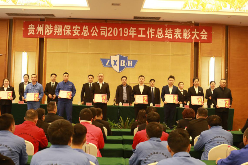 2020年1月20日下午,貴州陟翔保安總公司2019年度工作總結(jié)表彰大會在貴定縣御庭酒店會議室召開?偣竟蓶|李鵠、羅仕銀、總經(jīng)理馮波、副總經(jīng)理陳春生、余艷、財務(wù)總監(jiān)楊長碧出席會議,各分公司、項目部、培訓(xùn)學(xué)校負(fù)責(zé)人、總公司全體人員、分公司員工代表、受到表彰的先進(jìn)單位代表和先進(jìn)個人參加會議。總公司常務(wù)副總經(jīng)理張小慶主持會議。