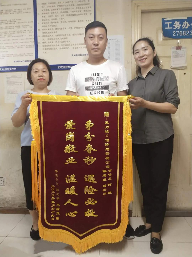 經(jīng)半個多月的治療,患者于2020年7月7日康復(fù)出院。出院后,患者在家屬的陪同下,將一面印有“爭分奪秒、遇險必救、愛崗敬業(yè)、溫暖人心”的錦旗送至我公司駐點星力城保安隊員手中,并再三表示感謝。隊員們紛紛表示:“這是我們的份內(nèi)之事,我們的職責就是為業(yè)主和客人的安全保駕護航”。