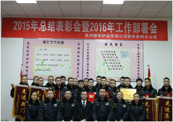 會上,貴州鎮(zhèn)東護運有限公司副總經(jīng)理羅仕銀、黨總支副書記陳旭永、銅仁本部負責人陳葉、黔東南州分公司負責人黃水波、六盤水市分公司負責人夏誠豇依次匯報了2015年工作總結(jié)和2016年工作計劃,同時對2015年先進個人、先進集體、安全特別貢獻及特困人員進行了頒獎及慰問。