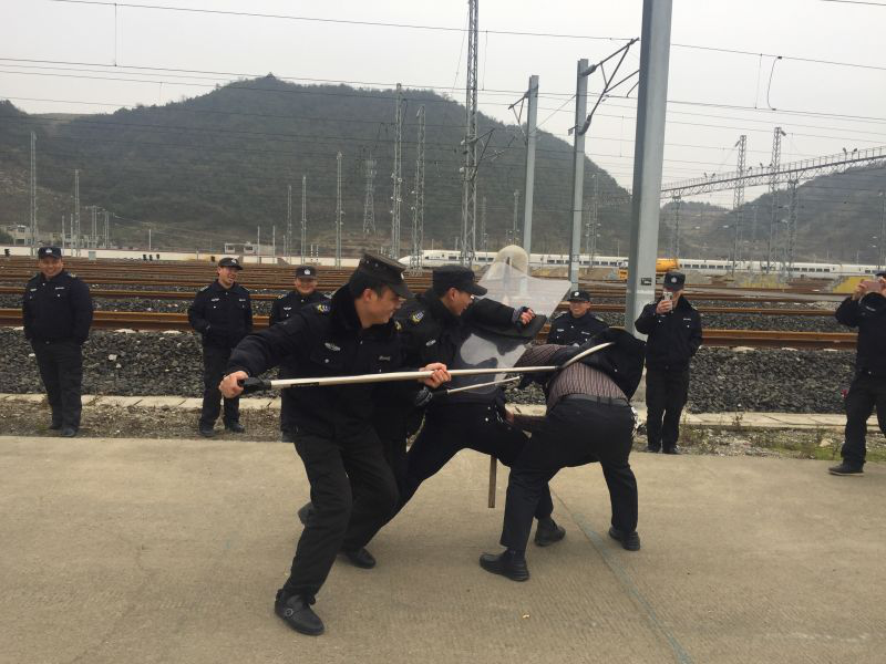 三、按照客戶單位《反恐怖主義法》宣傳教育活動周安排,于2016年12月21日14:00-16:00,由駐車輛段動車所保安隊開展反恐處突實作演練,共計26名駐車輛段動車所保安隊隊員參加演練,于2016年12月22日9:00-10:00,由駐車輛段、客運段保安隊開展反恐處突實作演練,共計12名駐車輛段、客運段保安隊隊員參加演練。本次演練以反恐怖主義法教育、反恐器材使用、反恐團(tuán)隊配合和應(yīng)對刀斧砍殺實作演練為主,有效提高了職工反恐應(yīng)急處置能力。