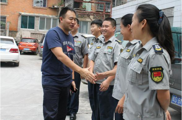 9月3日,銅仁本部總經(jīng)理陳葉率領(lǐng)行政人員一行人對城區(qū)各中隊進行了節(jié)日期間值班情況的檢查,看望、慰問一線員工,并和員工一起觀看大閱兵。