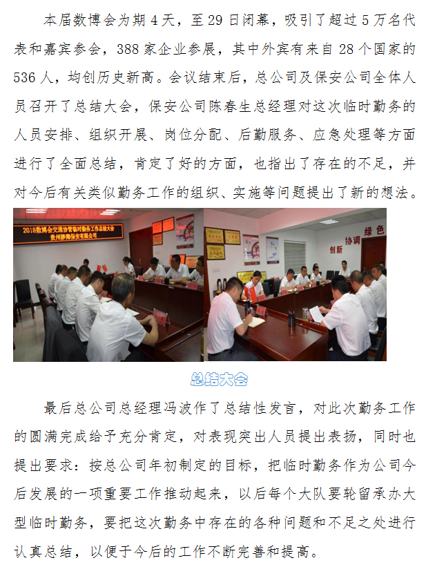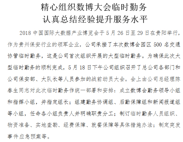 精心組織數(shù)博大會臨時勤務(wù) 認真總結(jié)經(jīng)驗提升服務(wù)水平