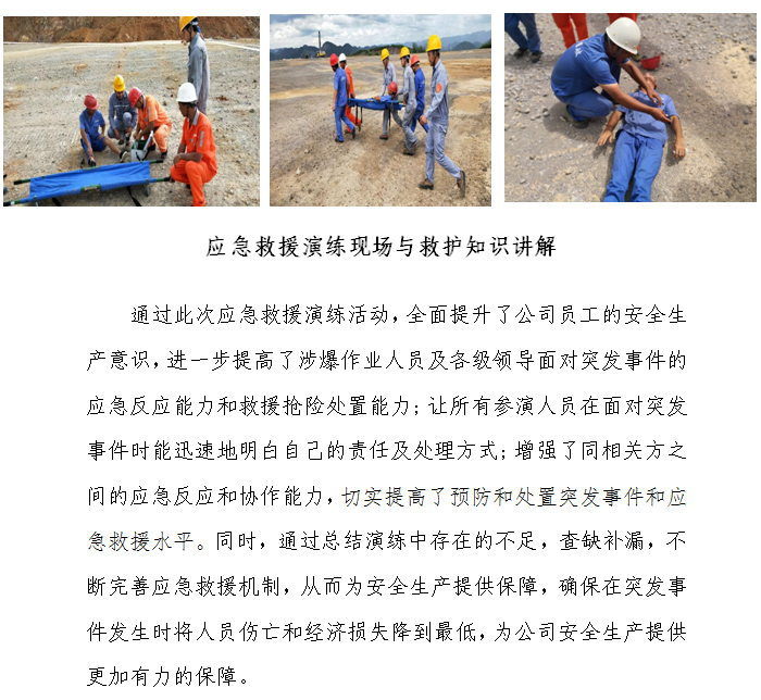 > 銅仁海螺礦山與銅仁一鼎爆破聯(lián)合開展“安全生產(chǎn)月”爆破事故 應(yīng)急救援演練活動