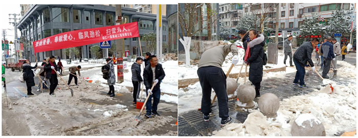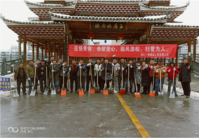 2018年12月29日晚間至12月30日白天,玉屏縣迎來(lái)立冬以來(lái)的第一場(chǎng)降雪。鵝毛般的大雪紛紛灑灑的落下,整個(gè)縣城猶如銀裝素裹,分外妖嬈!但是路面的積雪成冰,給市民出行帶來(lái)了諸多不便,為方便行人出行,31日上午,項(xiàng)目部行政人員和涉爆人員在項(xiàng)目部負(fù)責(zé)人的帶領(lǐng)下,開展了義務(wù)掃雪除冰活動(dòng)。