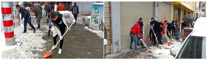 上午10點(diǎn),員工們頂著風(fēng)雪,陸續(xù)來(lái)到公司。在項(xiàng)目部張總的帶領(lǐng)下,大家不畏嚴(yán)寒,揮舞著鐵鍬開始對(duì)縣城風(fēng)雨橋附近的人行道及斑馬線的積雪和結(jié)冰進(jìn)行清掃。大家你追我趕,齊心協(xié)力,配合默契,鏟的鏟、推的推、掃的掃,干的熱火朝天,不亦樂(lè)乎,忙碌的身影構(gòu)成了一道亮麗的風(fēng)景線。雖然室外溫度很低,但大家勞動(dòng)的熱情和團(tuán)結(jié)的力量讓這個(gè)冬日變得格外溫暖。